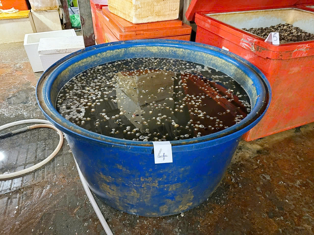 Tang vật ốc ngâm hoá chất. Ảnh: CACC