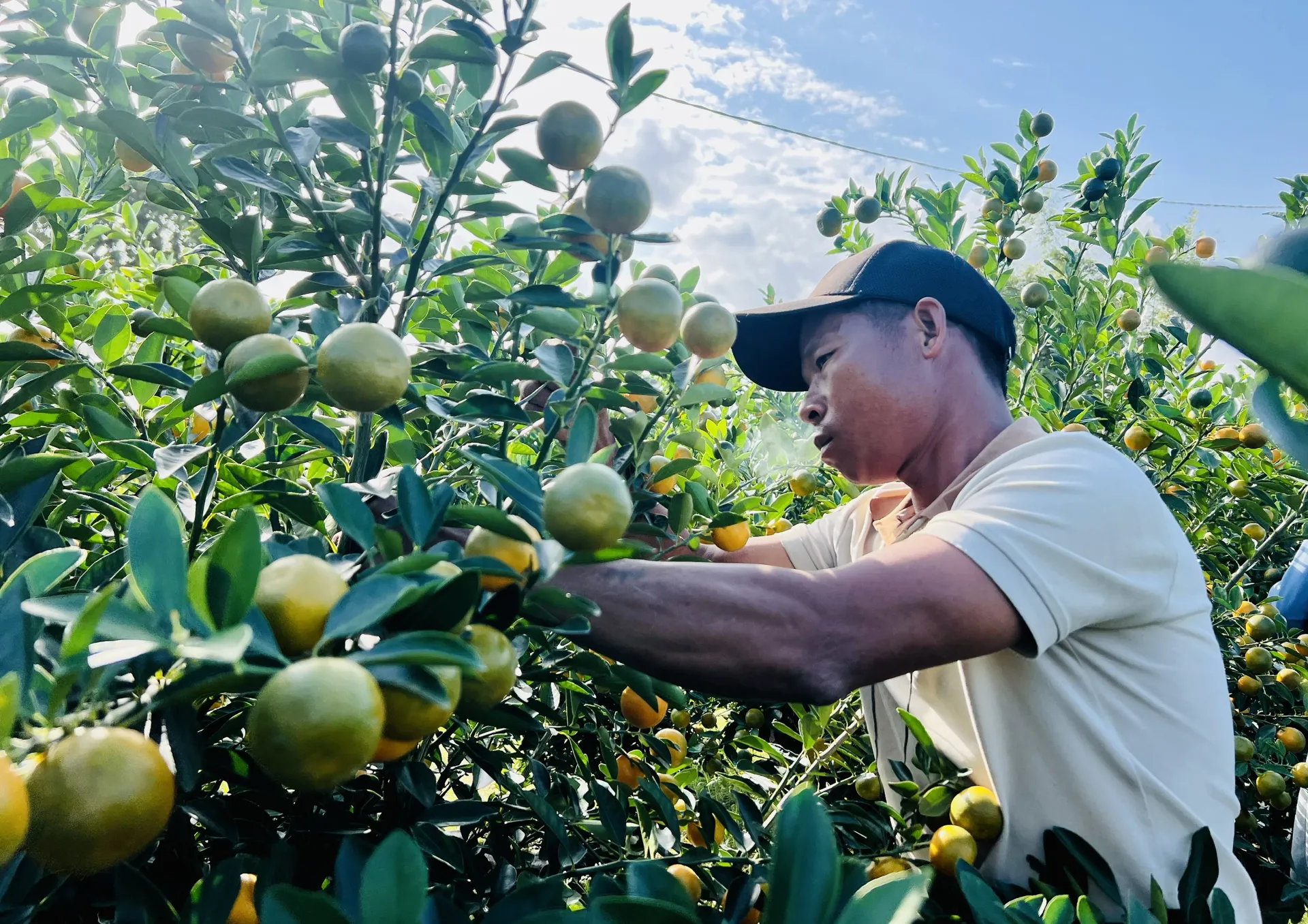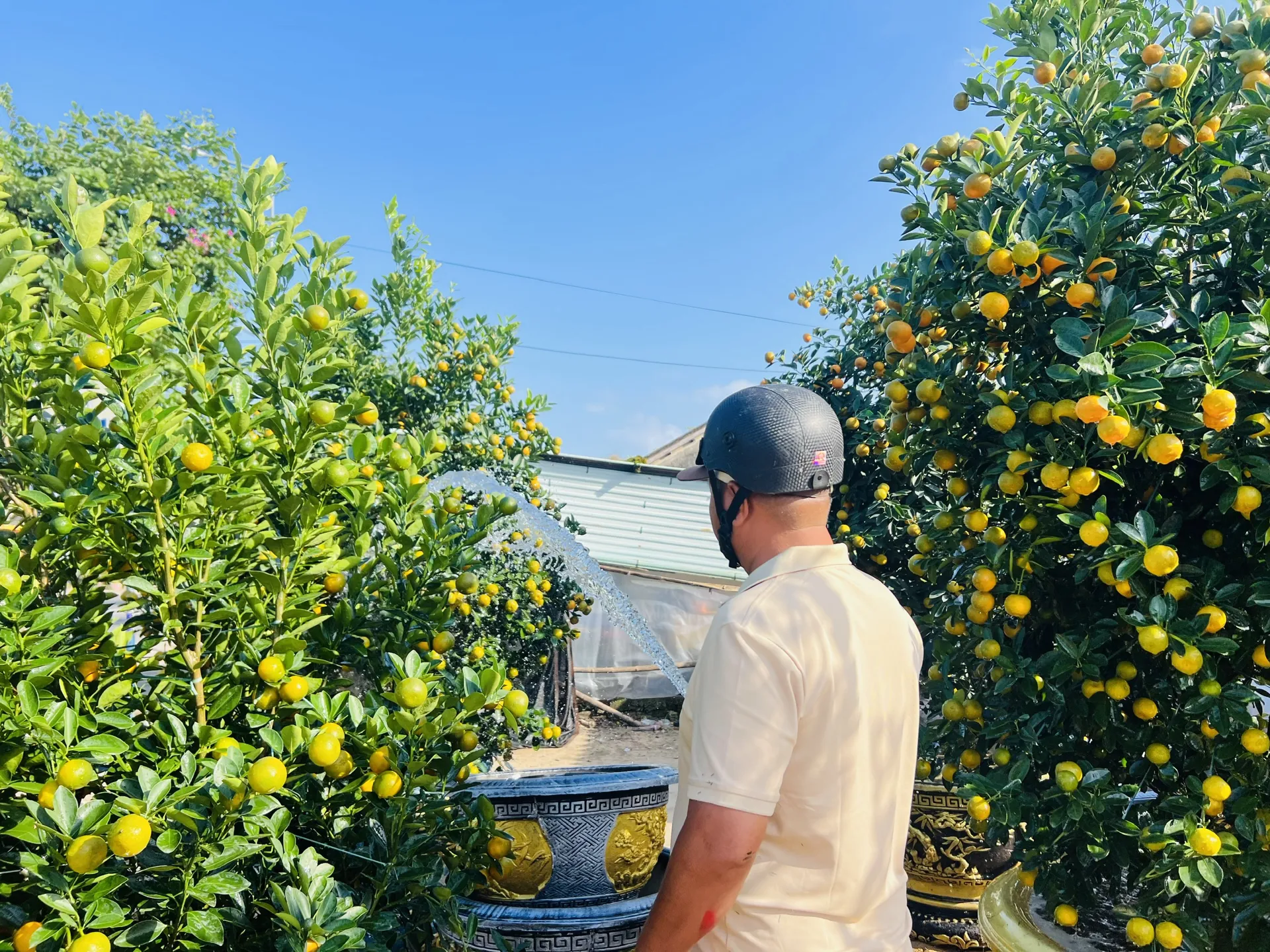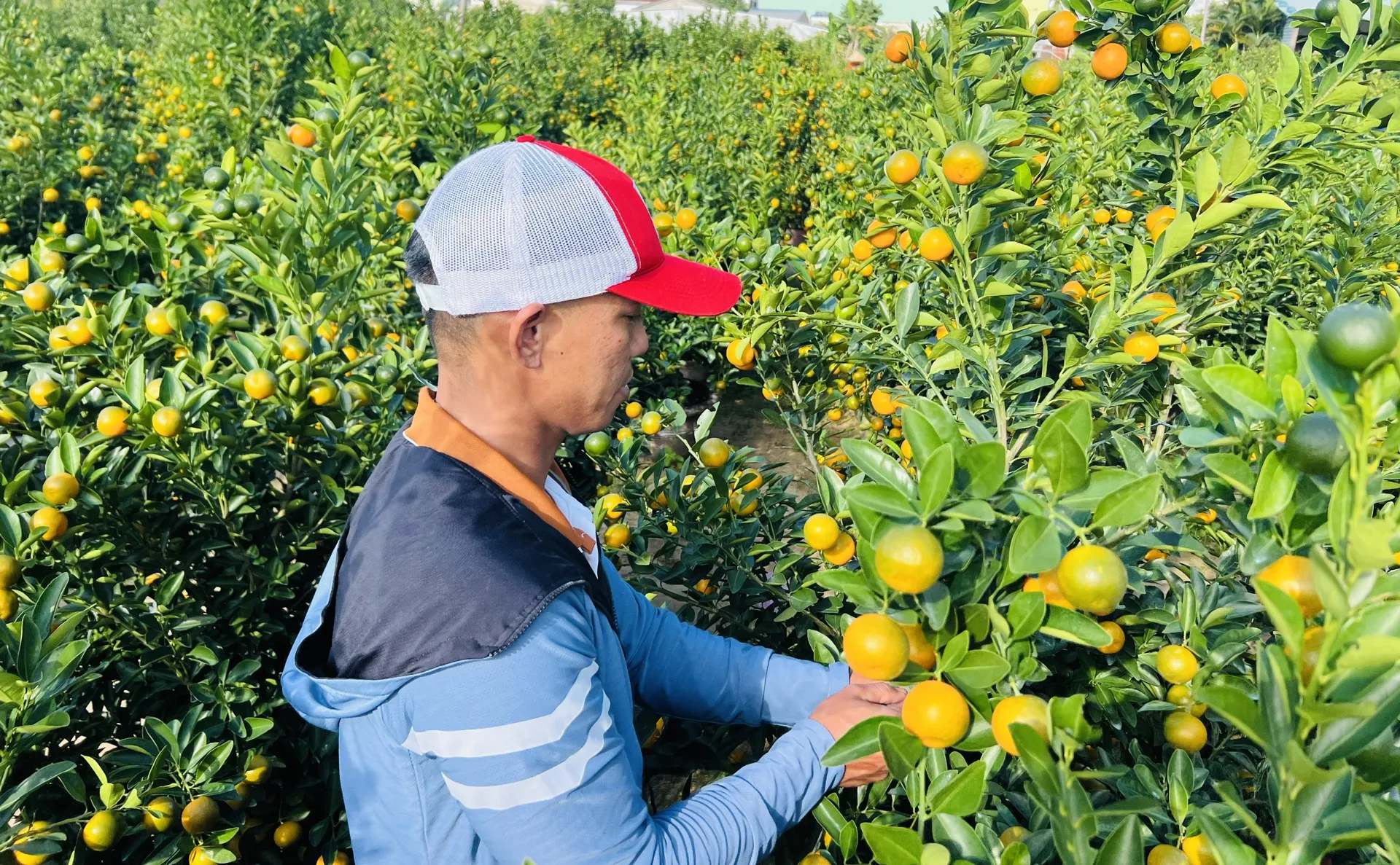 Tại phường Hội An Tây, hàng chục nghìn chậu quất cảnh xanh tốt, sai quả, dáng đẹp đã sẵn sàng phục vụ người dân và thương lái khắp các địa phương. Nhiều hộ trồng quất phấn khởi khi thương lái đến đặt cọc thu mua với số lượng lớn, giá bán ổn định, hứa hẹn một vụ quất Tết Nguyên đán thắng lợi.